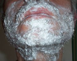 (shaving brush) (shaving cream) (safety razor) (electric shaver) |