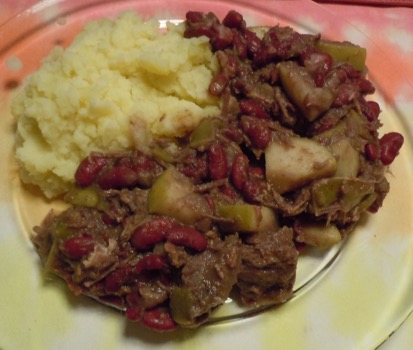Traditionally, the dish is made of layers of the meat/beans/apples